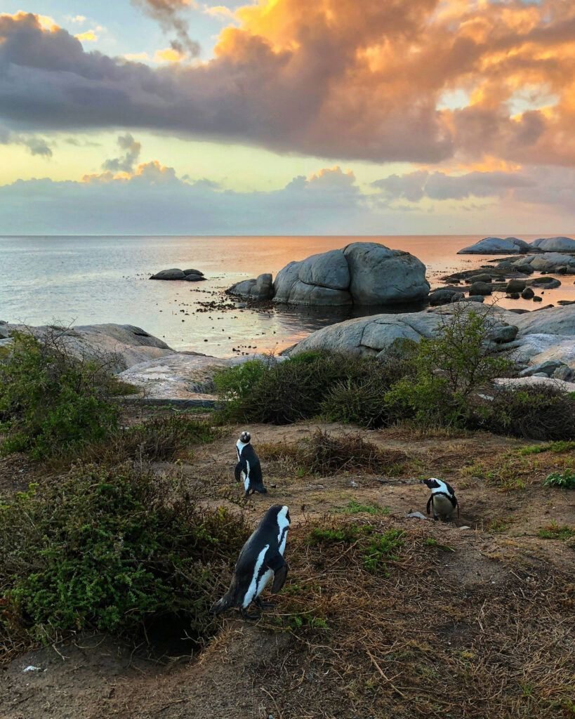 - Les amoureux des animaux devraient se rendre a Boulders African Penguin Colony (colonie de pingouins africains de Boulders) à Simon’s Town pour saluer la colonie d’adorables manchots africains, une espèce en voie de disparition, qui braient comme des ânes (à tel point qu’ils sont également connus sous le nom de manchots Jackass).